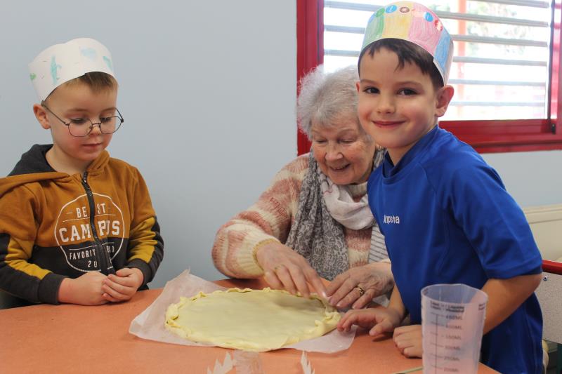 Pendant le temps de cuisson, les enfants et les résidents ont fabriqué les couronnes.👑