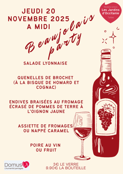 Le Beaujolais nouveau arrive 🍷 et pour le fêter comme il se doit et lui faire honneur 😉 toute l'équipe de notre résidence avec services seniors "Les Jardins d’Occitanie" se prépare à gâter ses résidents!