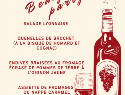 Salade lyonnaise, quenelles de brochet à la bisque de homard et cognac, endives braisées au fromage, écrasé de pommes de terre à l'oignon jaune, assiette de fromages ou nappé caramel, poire au vin ou fruit, le tout accompagné du traditionnel verre de Beaujolais! Qu'elle saveur aura t il cette année? 😜