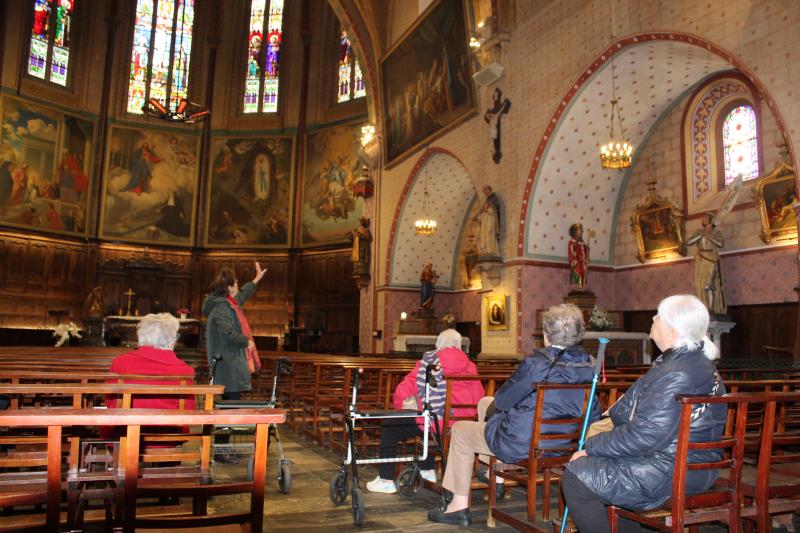 Enfin du beau temps et c'est parfait pour une visite guidée de la collégiale d'Ibos par une bénévole du village.